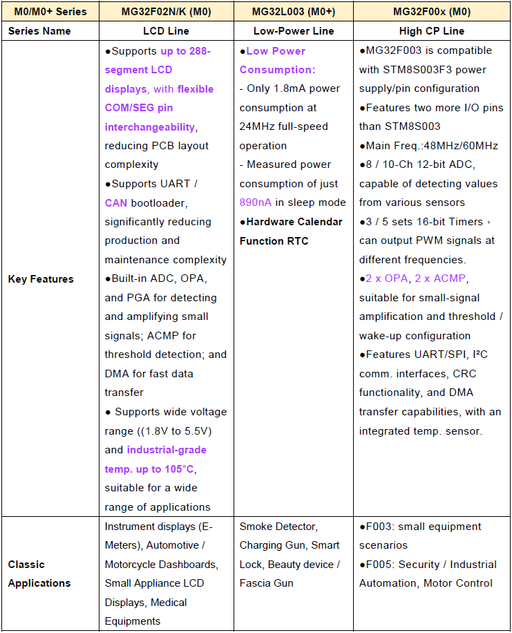 *Also, you can browse the M3/M0/M0+ product pages on Megawin Technology's official website: