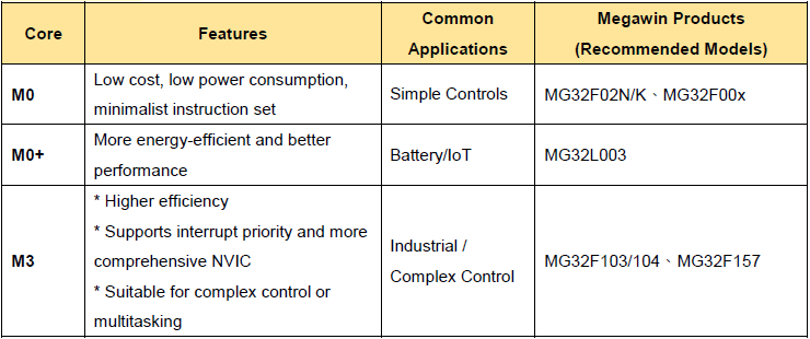 M0 Series: https://www.megawin.com.tw/products/ARM-Cortex-M0