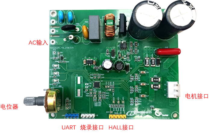 CGH系列在功率驱动能力上进行分级设计,不同型号的EVB在门驱动器配置与耐压能力上存在差异,整理如下表,各芯片与EVB可精准匹配不同功率场景需求 (如: 有感风机、空调风机、立扇/吸顶扇、空调排水泵…..等。)