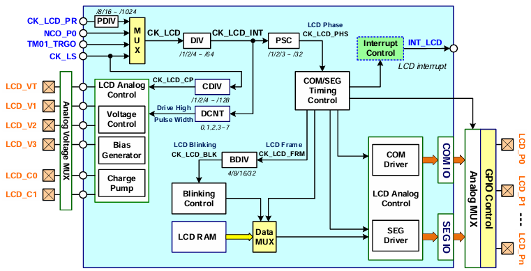 该系列主要锁定多脚位LCD 显示与复杂应用市场,其内建 LCD Driver最高可支持8个COM与40个SEG讯号,最多可驱动288个显示点(8 COM × 36 SEG),可满足各类多点数LCD面板的应用需求。