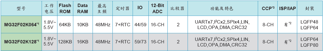 MG32F02K系列主要功能: