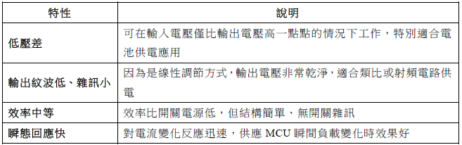 LDO與MCU(微控制單元)的搭配,廣泛應用於需要穩定低電壓供電的嵌入式系統中。LDO能為MCU提供低雜訊、穩定的電源,確保系統運行可靠並提升整體效能。